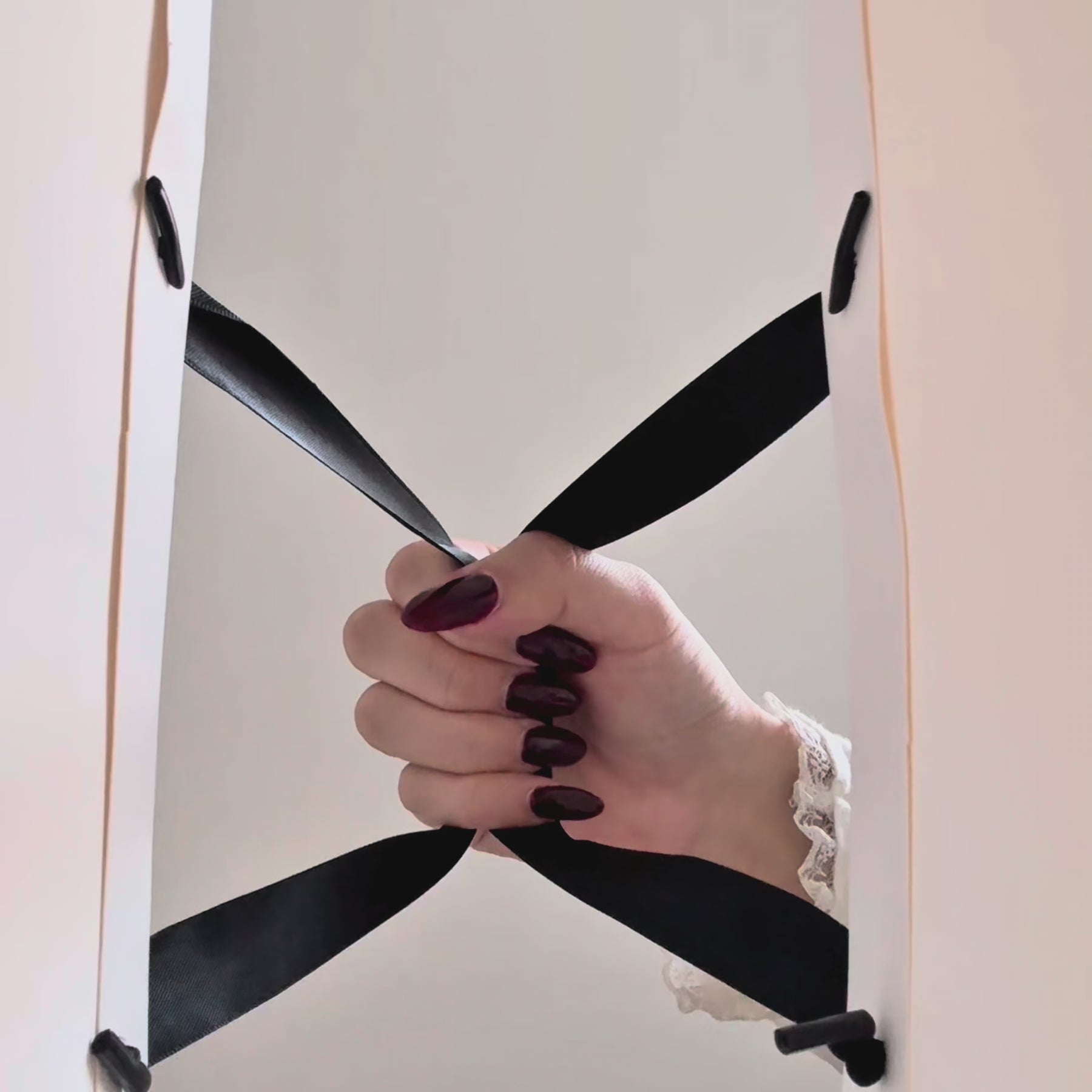 クラスプを閉める際は、両側を折りたたむように戻し、「カチッ」と音がしてしっかりと留まるまで押し込んでください。